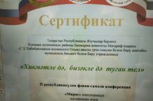 ТР Язучылар берлеге Кукмара муниципаль Башкарма комитеты мәгариф идарәсе “Г.Х.Хабибрахманов исемендәге Олыяз авылы урта гомуми белем бирү мәктәбе”ндә узган “Хикмәтле дә, бизәкле дә туган телем” II республикакүләм фәнни-гамәли конференциясендә катнашып, “Мирас” юнәлешендә 5 нче сыйныф укучылары Хөҗәтов Р., Хабибуллина Р. сертификатка ия булдылар. Җитәкче: Г.В.Кашапова