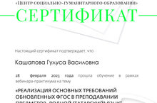 Кашапова Г.В. прошла обучение в рамках вебинара-практикума на тему «Реализация основных требований обновленных ФГОС в преподавании предметов «Родной (татарский) язык» и «Литература на родном языке»»