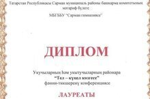 Иске Айман төп гомуми белем бирү мәктәбе туган (татар) теле укытучысы Г.В.Кашапова Сарман районы “Сарман гимназиясе” тарафыннан оештырылган “Тел – күңел көзгесе” районара фәнни-гамәли конференциясенең “Дәрестән тыш чаралар ” юнәлеше буенча лауреат дипломына ия булды. Котлыйбыз.