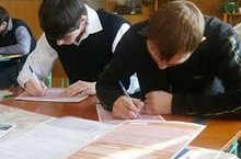 9 класс укучылары рус теленнән үзләренең белемнәрен сынап карау өчен имтихан биреп карадылар.