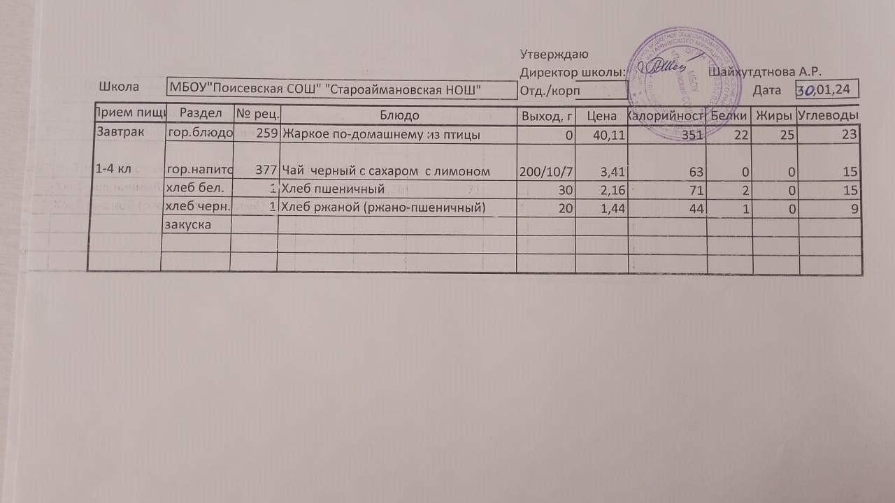 структурное подразделение МБОУ "Поиевская СОШ" ОУ "Староаймановская начальная школа"