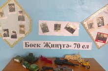 Бүген мәктәптә Бөек Җиңүнең 70 еллыгына багышлап хәрби техника макетлары һәм “Әтиләребез ил сагында” дип аталган фотолар күргәзмәсе оештырылды. Бу күргәзмәдә 7 класс укучылары бик актив катнаштылар.
