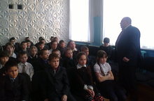 Бүген укучылар тәрбия эшләре буенча директор урынбасары Җәмилова Розалия Гарифҗан кызы һәм тормыш иминлеге нигезләре укытучысы Фаттахов Илсур Филис улы җитәкчелегендә Бөек Ватан сугышы ветераны- Мөхәмәдиев Сәгыйть бабай белән очрашуга бардылар. Укучылар Сәгыйть бабайны якынлашып килүче Бөек Җиңүнең 70 еллыгы һәм Совет Армиясе көне белән котлап открытка бирделәр, шигырь һәм җырларын бүләк иттеләр.
