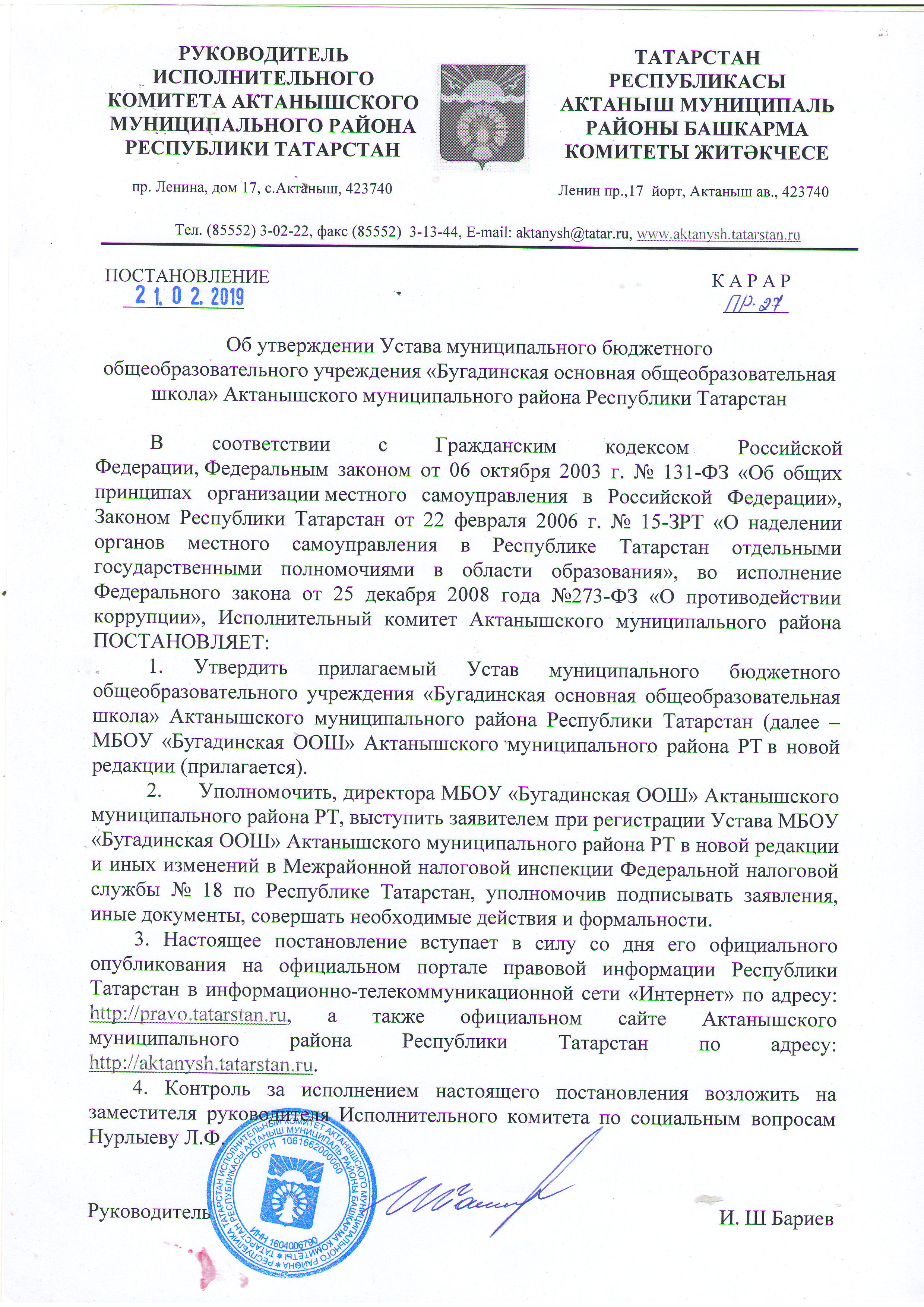 Муниципальное бюджетное общеобразовательное учреждение «Бугадинская основная общеобразовательная школа» Актанышского района РТ / Татарстан Республикасы Актаныш муниципаль районы "Богады төп гомуми белем бирү мәктәбе" гомуми белем бирү муниципаль бюджет учреждениесе