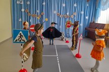 Перед новогодними каникулами дети старшей группы устроили веселое развлечение «Ворона-Алакай» со своими друзьями. Алакай объяснила своим друзьям секреты правил дорожного движения.