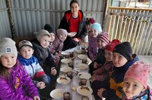Сегодня дети старшей-подготовительной к школе группы вышли на улицу и собрали яйца, крупы. Они благодарили хозяев и желали им добра. Дети пригласили их на праздник.
