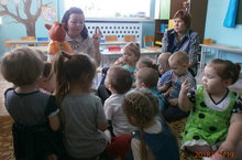 Театр атналыгында 2 кечкенәләр группасы балаларына Йомры икмәк белән сәяхәт итеп геометрик фигуралар, бер, күп төшенчәләрен ныгыттылар.Әкият геройларының биремнәрен үтәп логик фикерләү сәләтләрен үстерделәр.