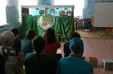 Балаларда театрга, матур әдәбияткә кызыксындыру уяту, курчакларны дөрес итеп уйнарга өйрәтү максатыннан тәрбияче Солтанова Ә.Н. җитәкчелегендә зурлар группасы балалары "Батыр әтәч" татар халык әкиятен сәхнәләштерделәр.Балалар образларга кереп , үз тавышлары белән, сәнгатьле дөрес интонация белән сөйләрделәр.
