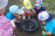 Ежедневно черепахи становятся жертвами человечества, которое вольно и невольно их уничтожает. И мы решили рассказать ребятам об этом животном. Малыши посмотрели видеофильм о жизни черепах, о местах обитания, о том, какие бывают черепахи, как передвигаются, где живут, чем питаются. Черепахи обладают хорошим зрением, они намного умнее кроликов, уток, куриц и мышей. Ещё с воспитанниками рассмотрели живую черепаху. Малыши с большим интересом и восторгом рассматривали это замечательное животное, кормили её. Ребята в этот день узнали много интересного и познавательного о жизни черепах. -