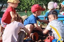 Одним из самых любимых занятий детей в детском саду на прогулке является игра в песочнице. В ней можно придумать великое множество увлекательных построек, игр, сюжетов. Ребята всех возрастных групп нашего детского сада с удовольствием играют с песком: делают сказочные постройки, дорогу, кулички. В процессе игры у них развивается не только усидчивость, а также глазомер и мелкая моторика рук. Кроме того дети учатся играть рядом с другими ребятами, что необходимо для развития. -