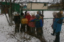 Табигатьне яратучы балалар әти-әниләре белән бергә җимлекләрне көздән үк ясап куйганнар.Кыш көне прогулка вакытларында кошларга җим сибәләр, ә үзләре читтән генә аларны күзәтәләр.Нинди кызык һәм рәхәт бит җимлеккә килгән кошларны күзәтүе.! Сез дә онытмагыз, кошларга җим сибәргә!