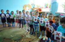 Уртанчылар группасында балаларны төрле яктан үстерү өчен барлык шартлар тудырылган.Балаларның иң яраткан эше рәсем, әвәләү, ябыштыру тора.Алар тәрбиячесе Солтанова Ә.Н. өйрәткәнчә геометрик фигуралардан чәчәкләр кисеп ябыштырдылар.
