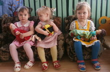 Беренче кечкенәләр төркеме кызлары белән музыка эшчәнлегеннән индивидуаль эш вакытында бишек җырлары өйрәнәләр.