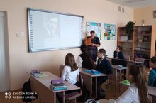 В честь 115-летия со дня рождения Мусы Джалиля Хисамова Нурсия Муллануровна провела библиотечный урок для учащихся 5б класса под названием "Не преклоню колен, палач, перед тобой".