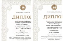 Поздравляем призеров заключительного этапа Республиканской олимпиады школьников по английскому языку Имамова Хайдара (6б класс, учитель Фахразиева Илина Хавиловна) и Хисматуллина Булата (10 класс, учитель Камалетдинова Роза Тимеряновна). Молодцы! Так держать!