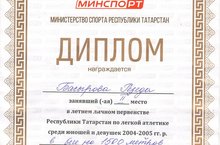 Ученица 6а класса Басырова Резеда заняла II место в летнем личном первенстве Республики Татарстан по легкой атлетике среди юношей и девушек 2004-2005 года рождения в беге на 1500 и 3000 метров. Поздравляем! Так держать!