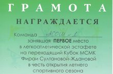 Команды школы заняли I и III места в легкоатлетической эстафете на переходящий Кубок МСМК Фираи Султановой-Ждановой в честь открытия летнего спортивного сезона. Молодцы! Так держать!