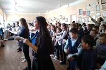 В школе на переменах прошли флеш-мобы, посвященные Дню космонавтики. Ребята с удовольствием танцевали под песни о космосе.