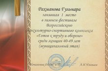 Педагоги школы Рахманова Гульнара Фалгатовна, Галлямова Лилия Васиковна, Мухаметов Ирек Марселевич, Хазиев Равиль Фагитзянович стали победителями в зимнем фестивале Всероссийского физкультурно-оздоровительного комплекса "Готов к труду и обороне" и награждены грамотами. Поздравляем! Желаем дальнейших успехов!