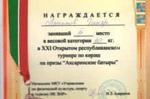 Поздравляем ученика 5б класса Латипова Гумара, занявшего III место в весовой категории 40 кг в XXI Открытом республиканском турнире по кураш на призы "Аксаринские батыры". Молодец! Так держать!