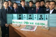 15 февраль көнне 6а сыйныф укучылары белән китапханәче Хисамова Нурсия Мулланур кызы "Онытылмый Әфган кырлары" исем астында библиографик дәрес үткәрде.