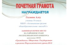 Гилаева Алсу (10 класс) - I место (руководитель - учитель истории и обществознания Сафиуллин Руслан Наилевич),