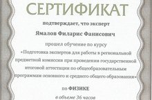 Учитель физики Ямалов Филарис Фанисович прошел обучение по курсу "Подготовка экспертов для работы в региональной предметной комиссии при проведении государственной итоговой аттестации по общеобразовательным программам основного и среднего общего образования".