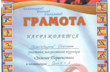 Учащийся 1б класса Шайхразиев Ильшат принял участие в шахматном турнире "Зимнего Первенства" и награжден грамотой в номинации "Юноши 2008 года рождения". Поздравляем!