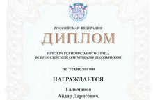 Ученик 10б класса Галимянов Айдар (руководитель - Мухамадиев Дильшат Сагитович) стал призером регионального этапа Всероссийской олимпиады школьников. Молодец! Поздравляем!