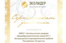 Коллектив школы награжден сертификатом участника Республиканского конкурса "Эколидер" в номинации "Экологическое образование в общеобразовательных организациях". Поздравляем!