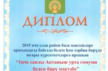 Мәктәбебез коллективы 2015 нче елда район база мәктәпләре арасында бәйгедә белем һәм тәрбия бирүдә югары күрсәткечләргә ирешкән өчен Актаныш муниципаль районы башлыгы Ф.М.Камаевның дипломы белән бүләкләнде.