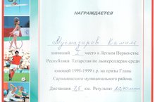 Поздравляем учащегося 10 класса Мугтазирова Камиля, занявшего 1 место в Летнем Первенстве Реуспублики Татарстан по лыжероллерам среди юношей 1998-1999 г.р. на призы Главы Сармановского муниципального района . Дистанция 7,5 км. Результат 20.40 мин. Молодец!