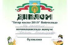 В районном дворце культуры состоялось награждение участников районного этапа Республиканского конкурса "Татар кызы - 2015". Ученица 11А класса Басыйрова Лейсан завоевала первенство в номинации "Самая талантливая". Лейсан, желаем тебе успехов в следующем этапе конкурса!