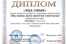 Мәктәбебезнең "Serdesh" медиаүзәге астында эшләүче "Бас!ма" газетасы һәм мәктәп радиосы "Яңа офык" район мәктәп матбугат чаралары бәйгесендә катнашып, "Иң яхшы урта мәктәп газетасы" һәм "Иң яхшы эшләүче мәктәп радиосы" номинацияләрендә җиңү яулады. Котлыйбыз! Алга таба да уңышлар телибез!
