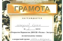 Поздравляем учащегося 4А класса Шакурова Булата, победителя Открытого Первенства ДЮСШ "Челны-Экстрим" по настольному теннису в возрастной группе 2004 года и младше. Молодец! Так держать!