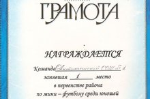 Команда нашей школы в составе учащихся 7-9 классов: Галиева А., Шаехова Р., Гайнуллина И., Саматова И., Шаесламова А., Халафутдинова А., Шакирьянова Э., Анварова Ш., Салихова И., Латипова А. (тренер - Анваров Шафкат Ильфатович) заняла I место в первенстве района по мини-футболу среди юношей.
