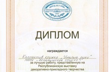 Коллектив кружка "Умелые руки" (руководитель - Мухамадиев Д.С.). и Ахметдинова Гульнара Гранитовна награждены дипломами за лучшие работы, представленные на Республиканскую выставку декоротивно-прикладного творчества педагогов и учащихся 1-11 классов общеобразовательных учреждений "Цветочные фантазии". Молодцы! Так держать!