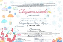 Сертификатом участника Республиканского конкурса-выставки декоративно-прикладного творчества "Поздравление Деду Морозу" в номинации "Новогодний сувенир" награждена Гимадиева Миляуша (педагог - Ахметдинова Гульнара Гранитовна). Молодцы, Миляуша!