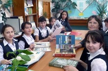 "Музей" түгәрәге укучылары җитәкчеләре Хамматуллина Лилия Илдар кызы белән китапханәдә экскурсиядә.