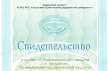 26 октября в городе Елабуга состоялся Межрегиональный конкурс "Созидательный труд школьника". В нем приняли участие следующие наши учащиеся: Галлямов Айдар, Султанов Ильназ, Галимзянов айдар, Лотфуллин Нурсиль, Галиева Илиза, Гилаева Айгуль, Вахитова Юлдуз. Руководители - учителя технологии Мухамадиев Дильшат Сагитович и Шайдуллина Гульшат Дульфатовна.