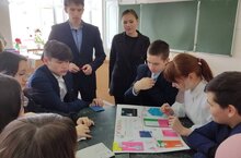Учащиеся 10-х классов сделали лэпбуки с обобщением своих знаний по химии. Также учащиеся 10 класса с помощью своих лэпбуков провели игру-урок для учащихся 8А класса. Учащиеся соревновались в командном зачете. Они узнали интересные факты о химических веществах и решили ребусы и загадки. В 8Т классе прошел практический урок химии "Реакции ионного обмена".