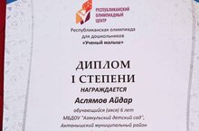 Воспитанник Азякульского детского сада Аслямов Айдар, Рамилу Мансурову и Рузанну Шакирову из Казкайского детского сада на республиканской олимпиаде для дошкольников "Ученый малыш" получили дипломы первой степени (Воспитатели Г.Р.Имамова, З.А.Гумерова). Поздравляем и желаем и в дальнейшем активно участвовать в олимпиадах с большим успехом!