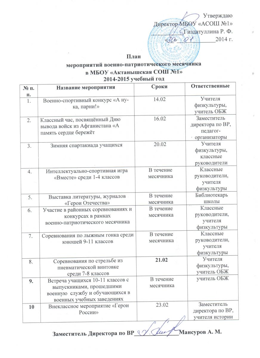 План мероприятий военно-патриотического месячника в 2014-2015 учебном году