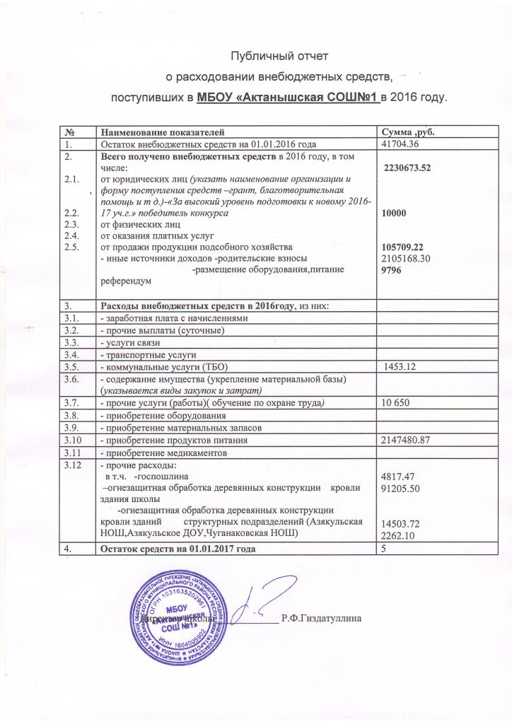 Публичный отчет о расходовании внебюджетных средств 2016