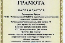 Совет ДОО школы имени Фарида Ахмадишина награжден Грамотой