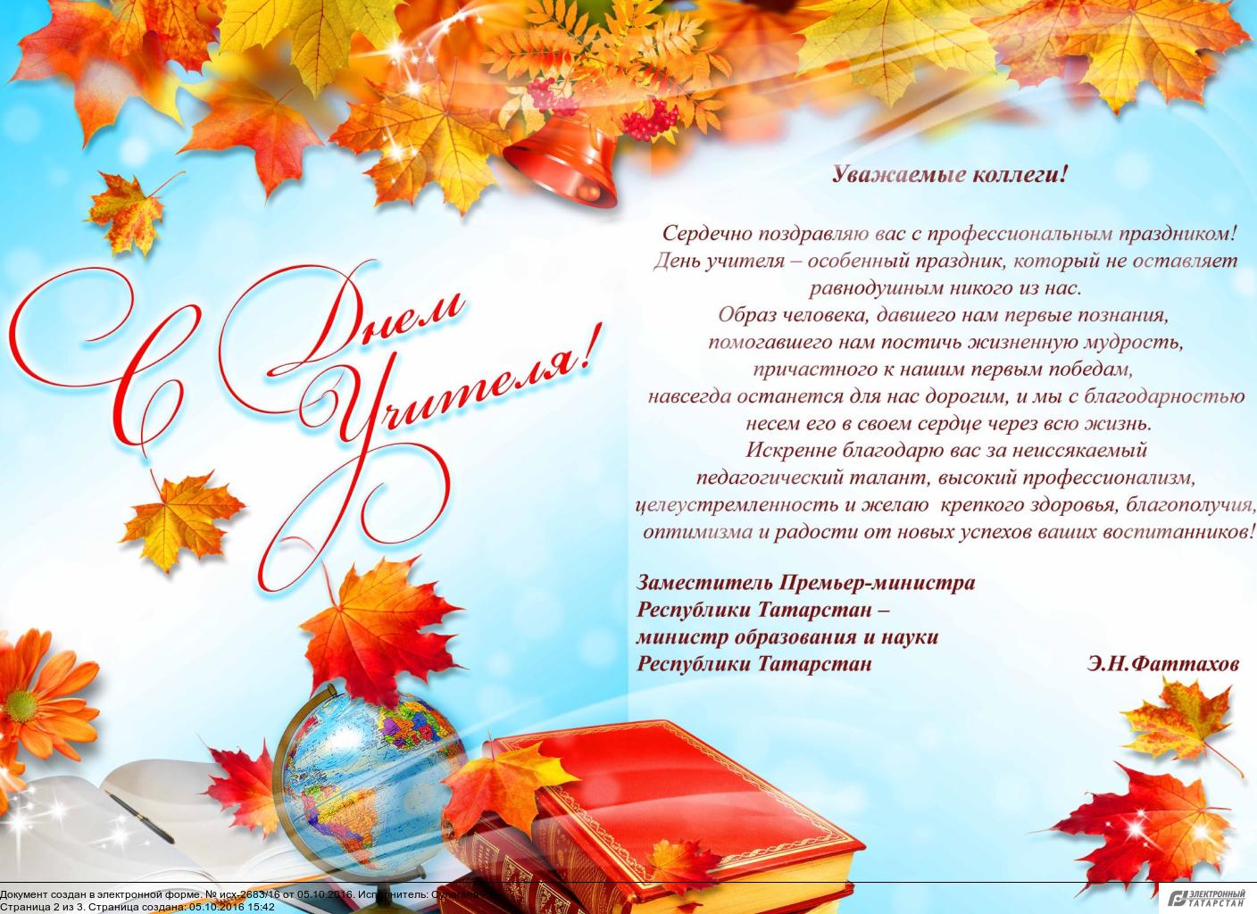Поздравление заместителя Премьер-министра Республики Татарстан - министра образования и науки РТ