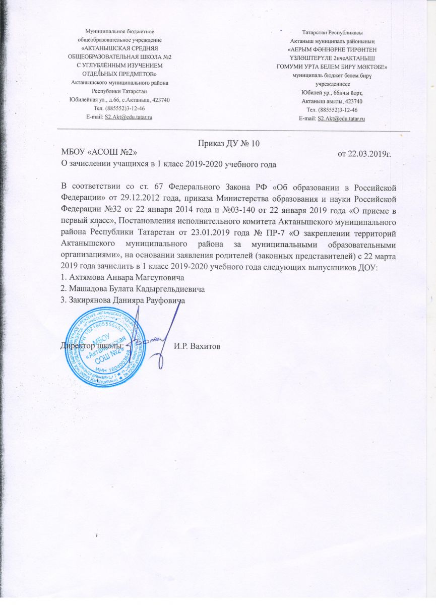 Муниципальное бюджетное общеобразовательное учреждение «Актанышская средняя общеобразовательная школа №2 с углубленным изучением отдельных предметов» Актанышского муниципального района Республики Татарстан / Татарстан Республикасы Актаныш муниципаль районы «Аерым фәннәрне тирәнтен үзләштерүле Актаныш икенче урта гомуми белем бирү мәктәбе» муниципаль бюджет гомуми белем бирү учреждениесе