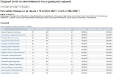 Сводный отчет по заполняемости тем и домашних заданий (18-23.10.2021)