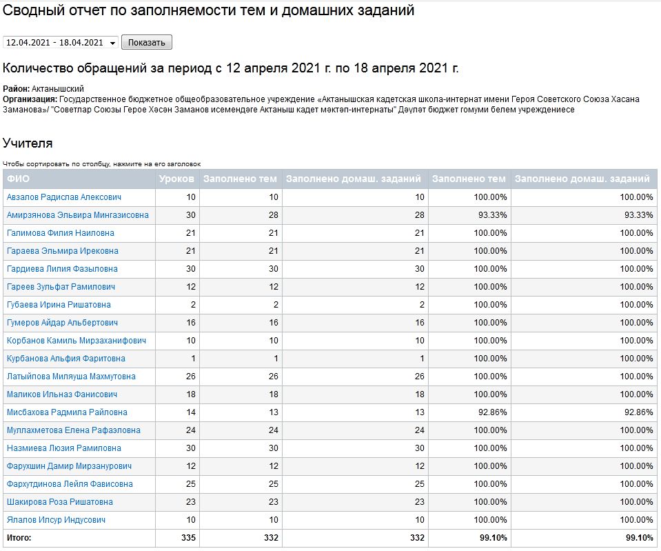 Сводный отчет по заполняемости тем и домашних заданий (17-18.04.2021)