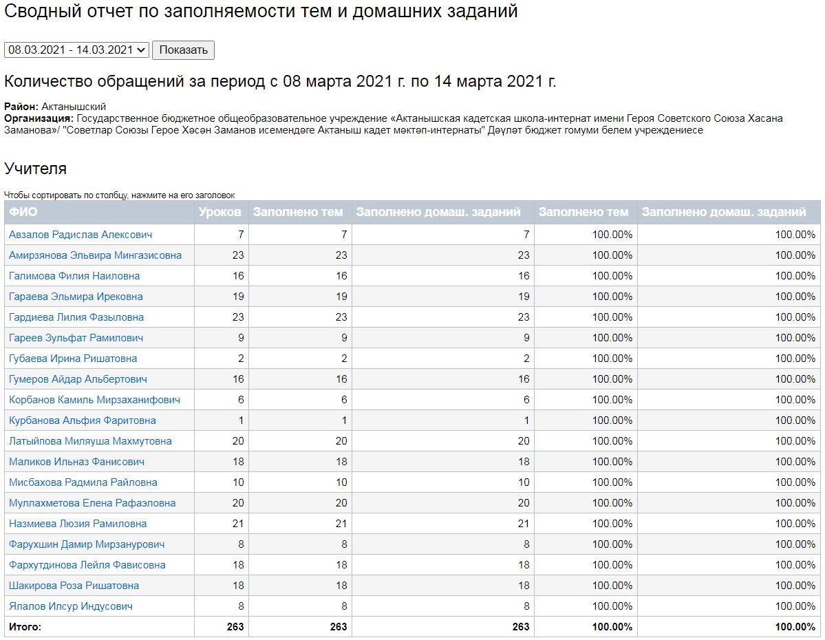 Сводный отчет по заполняемости тем и домашних заданий (09-13.03.2021)